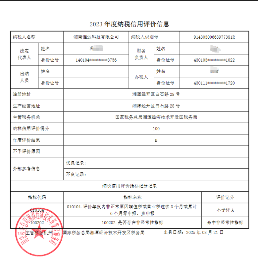 企業(yè)納稅信用等級報告: